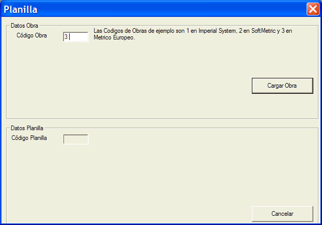 En la ventana que aparece teclee 3 en el campo Código de Obra