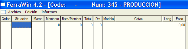 Aparecerá la ventana de detalle de planilla. Como es una planilla nueva, sólo tiene una fila vacia.