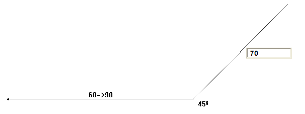 Pulse Enter y teclee 45 como valor del ángulo y 70 como medida del segundo tramo.