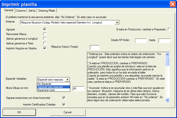 Desplegue la lista de Expandir Variables para ver las 3 opciones disponibles: No Expandir, Expandir sólo Máscara y Expansión Total.