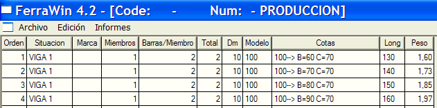 Vemos que se han generado 4 posiciones, pues habiamos indicado 4 pasos en la ventana anterior. También como ha indicado cada posición tiene 2 barras. En cada una de ellas el segundo tramo es de longitud fija, mientras que el primero tiene los valores: 60, 70, 80, 90.