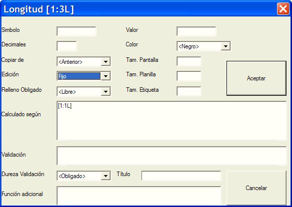 En el campo Calculado según teclee el símbolo de la longitud del primer miembro: [1:1L]