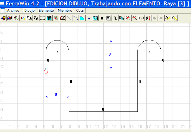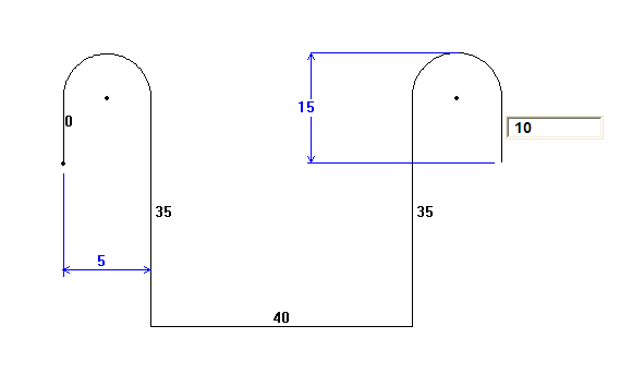 En la ventana de dibujo deje a cero la cota del primer gancho, el que está a la izquierda. Rellene el resto de cotas con los valores que quiera, por ejemplo: