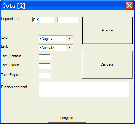Aqui vemos que la cota auxiliar depende de la cota [1:6L], que es el símbolo que representa la cota del gancho. Esto quiere decir que si se deja a cero la cota del gancho, como hemos hecho al principio de este capítulo, no se imprimirá esta cota auxiliar.
