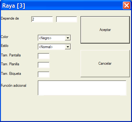 Otra cosa que vemos es que tras el literal "Depende de" hay 2 campos. Si se informara el segundo campo con otro número de elemento u otra símbolo de cota, se condicionaría la impresión de esta línea auxiliar a los 2 elementos o cotas: si uno de los 2 no se imprimiera, tampoco se imprimiría la línea auxiliar.
