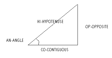 El nombre de la función AN_OP_HI( ) quiere decir que se le pasa como primer parámetro el ángulo AN, como segundo parámetro el cateto opuesto OP, y da como resultado la hipotenusa HI.