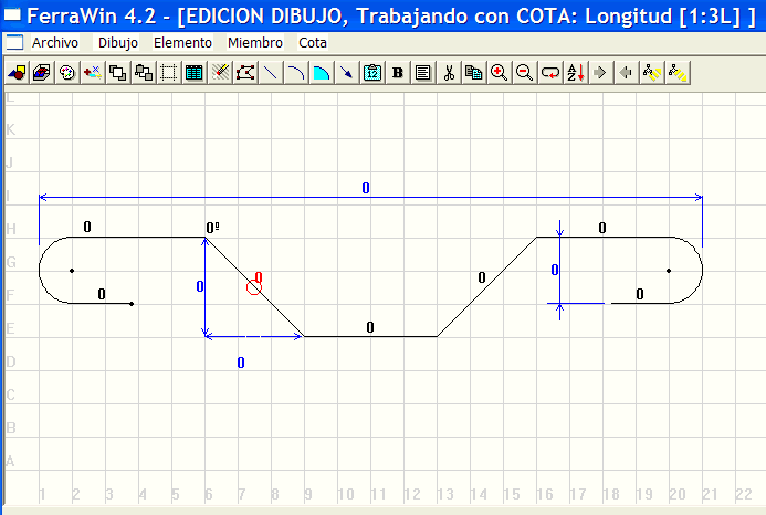 Ahora vamos a ver como está definida la expresión de cálculo en la cota calculada, la hipotenusa. Estando en modo "Trabajar con COTA", haga click con el botón izquierdo del ratón entre 8-F y 7-G para seleccionar la cota que representa la longitud de la hipotenusa: