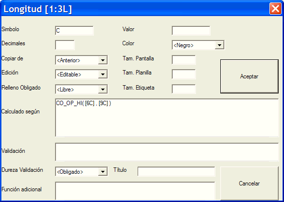 Vemos pues en el título de la ventana que la cota de un cateto tiene como símbolo [6C]