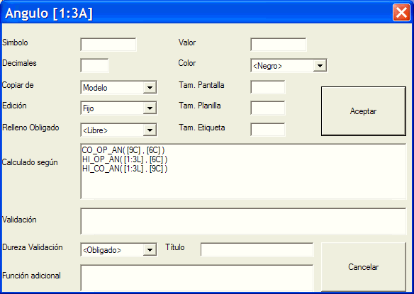 El ángulo se calculará con la primera expresión si el usuario informa las cotas que se utilizan en la expresión y que son los dos catetos , [9C] y [6C]